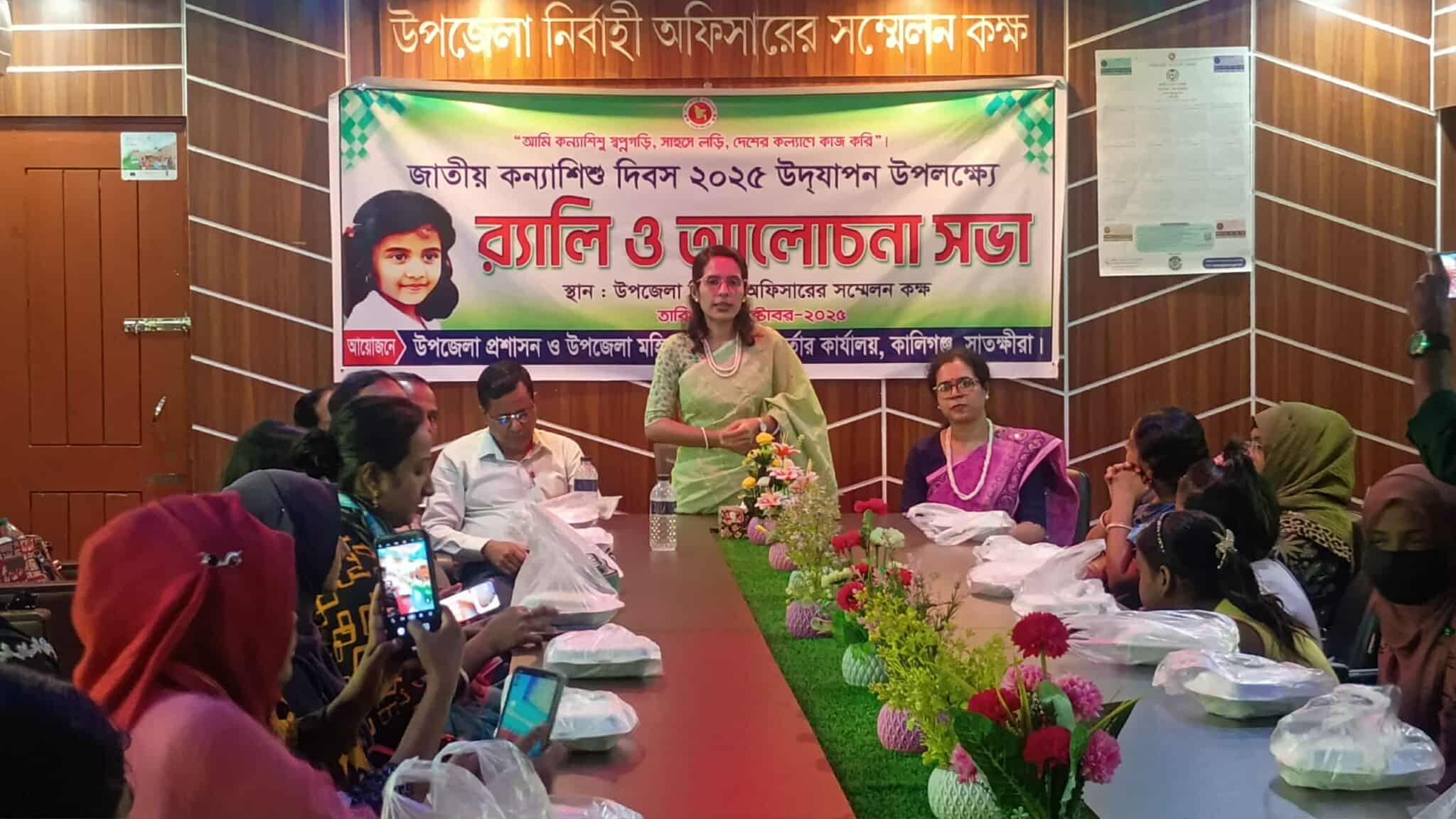 সাতক্ষীরার কালীগঞ্জ উপজেলা প্রশাসন ও উপজেলা মহিলা বিষয়ক অধিদপ্তরের আয়োজনে জাতীয় কন্যা শিশু দিবস ২০২৫ উদযাপন উপলক্ষে র্যালি ও আলোচনা সভা অনুষ্ঠিত হয়েছে। বুধবার ৮ অক্টোবর সকাল দশটায় উপজেলা নির্বাহী কর্মকর্তার কার্যালয়ে জাতীয় কন্যা শিশু দিবস উপলক্ষে এক আলোচনা সভা কালিগঞ্জ উপজেলা নির্বাহী কর্মকর্তা অনুজা মন্ডল এর সভাপতিত্বে অনুষ্ঠিত হয়। সভায় বক্তব্য রাখেন উপজেলা মহিলা বিষয়ক কর্মকর্তা অন্ন্যা চক্রবর্তী, উপজেলা যুব উন্নয়ন কর্মকর্তা এস এম আকরাম হোসেন সাংবাদিক এসএম আহমদ উল্লাহ বাচ্চু, সহ সরকারি কর্মকর্তা বিভিন্ন এনজিওর প্রতিনিধি সাংবাদিক ও কন্যা শিশুরা উপস্থিত ছিলেন। কালিগঞ্জ উপজেলা নির্বাহী কর্মকর্তা অনুজা মন্ডল বলেন কন্যা শিশুরা সমাজের বোঝা নয় তারাও দেশের মানবসম্পদ তাদেরকে সুশিক্ষায় শিক্ষিত ও দক্ষ কারিগরি শিক্ষায় শিক্ষিত করতে পারলে সমাজে অবদান রাখতে পারবে এবং নিজে প্রতিষ্টিত হয়ে পরিবারকে সহায়তা করতে পারবে পরিবারের পক্ষ থেকে সহযোগিতা করার আহ্বান জানান। পুরুষের পাশাপাশি নারীরা এখন সর্বত্র কর্মক্ষেত্রে যথেষ্ট ভূমিকা রেখে চলেছে।