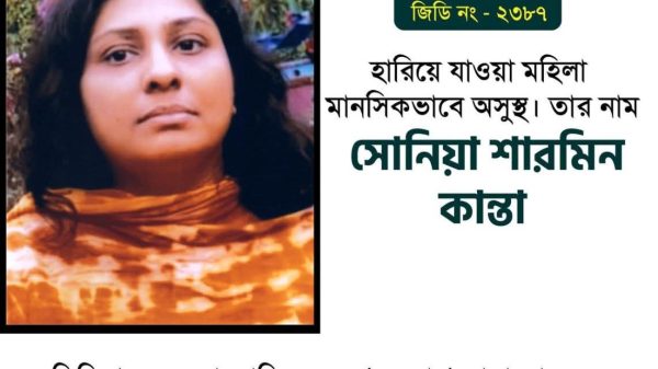সোনিয়া শারমিন কান্তা নামের একজন মহিলা মানসিকভাবে অসুস্থ হয়ে মোহাম্মদপুর থানাধীন শিয়া মসজিদ সংলগ্ন বাসা থেকে বেরিয়ে যান। যদি কোন সহৃদয়বান ব্যক্তি তাঁর সন্ধান দিতে পারেন তাকে উপযুক্তভাবে পুরষ্কৃত করা বিস্তারিত..